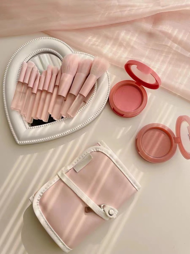 Bộ cọ trang điểm cá nhân GUVIET kích cỡ mini màu Hồng nude gồm cọ kèm theo túi đựng Shopee