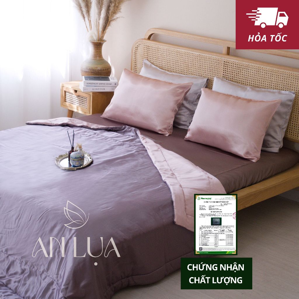 Bộ chăn drap gối 5 món An Lụa Xám đen hồng nude Shopee Việt Nam 73227