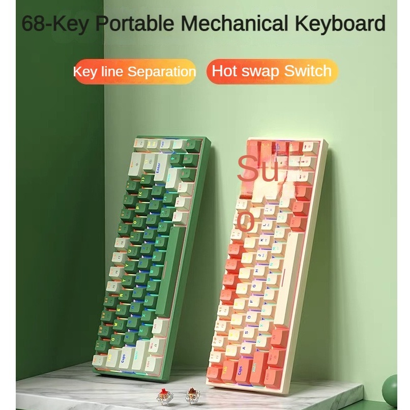 BOW G68S Hot Swap Real Mechanical Keyboard Wired Rainbow Light Portable External Laptop Red Axis is a popular picture for sexy and hot.
