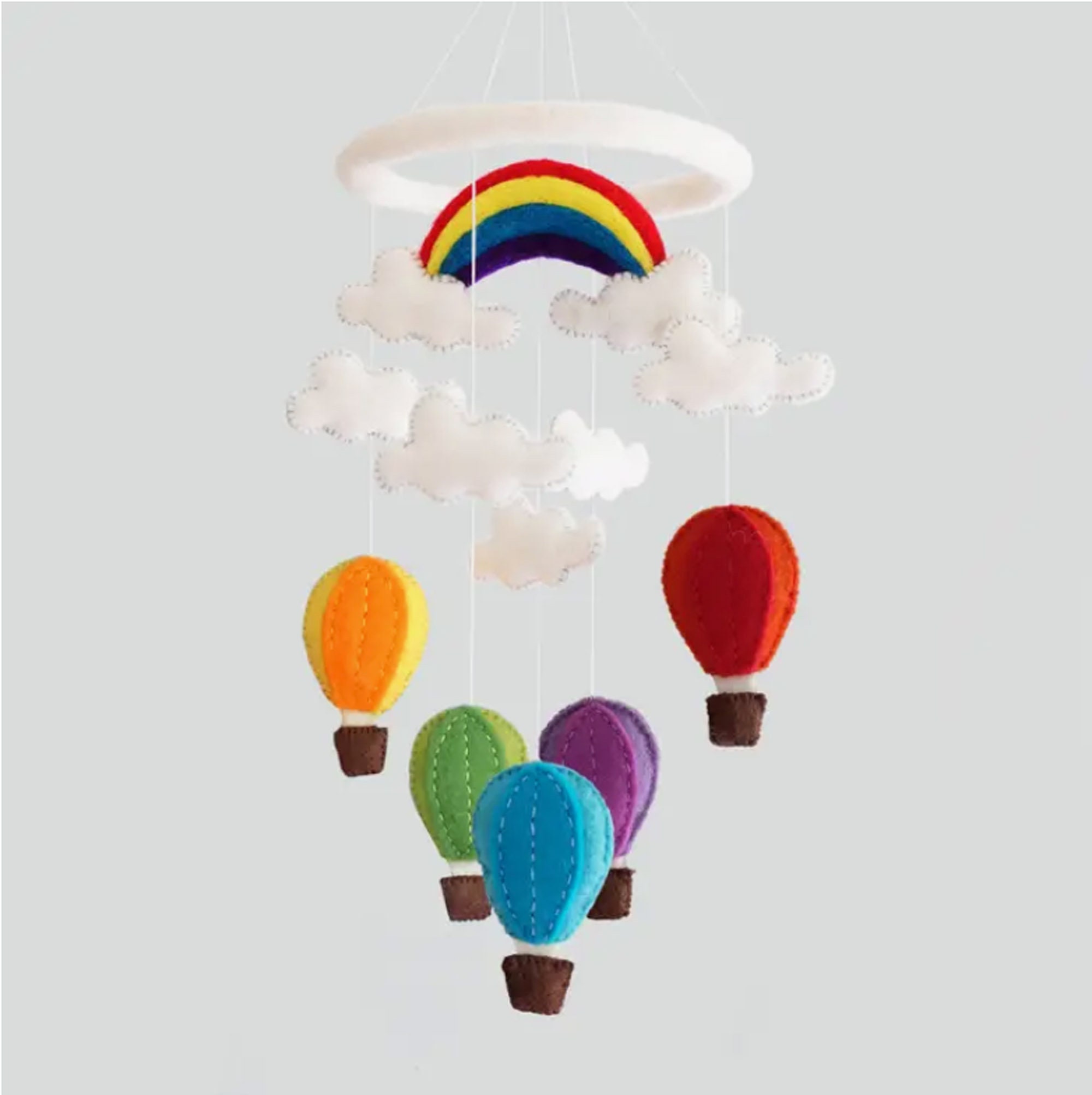 Baby Crib Mobile Hot Air Balloon Mobile For Nursery Rainbow Mobile Handmade Natural Eco Friendly 231840