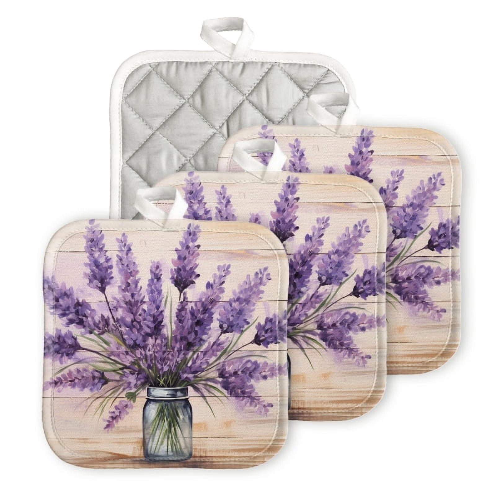 Tag : Bahomeck Heat Resistant Hot Pads 4 Pack Lavender Flowers In Mason Jar Square Pot Holder For