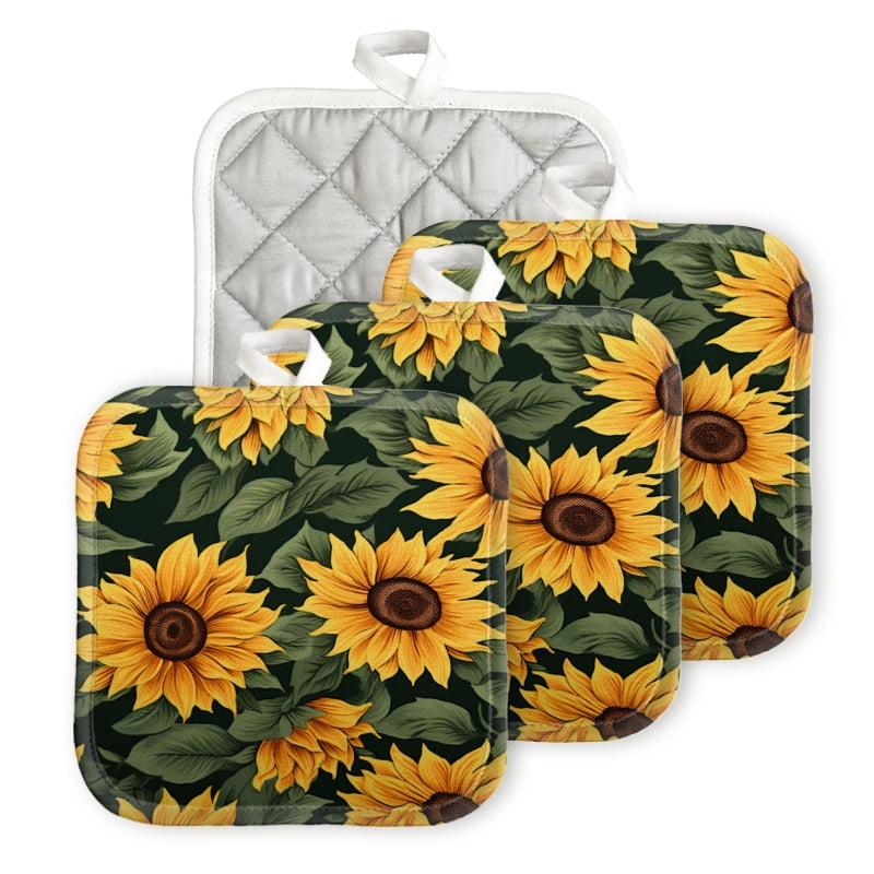 Tag : Bahomeck Heat Resistant Hot Pads 4 Pack Sunflowers With Dark Green Leaves On The Background