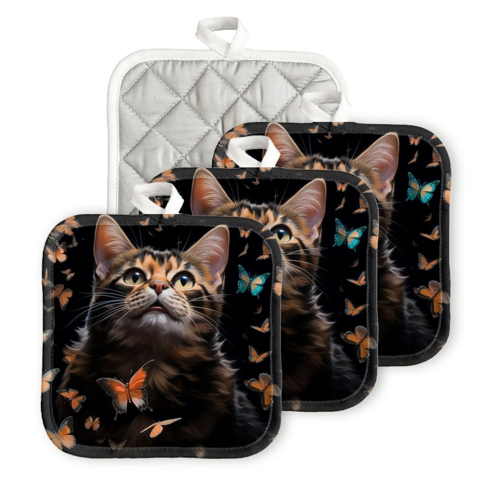Tag : Bahomeck Pot Holder 4Pcs Beautiful Cat Surrounded By Butterflies Square Heat Resistant Hot Pads