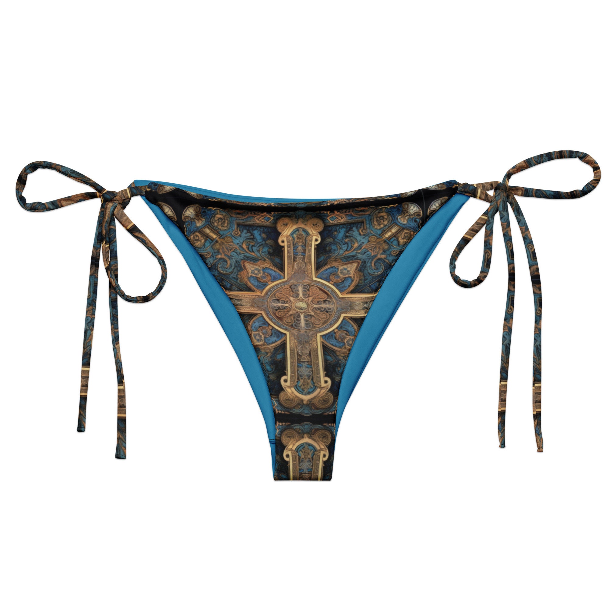 Tag : Bandana Cross Rococo Art Cobalt Blue String Bikini Bottom Beachgoers Poolside Resort Spa