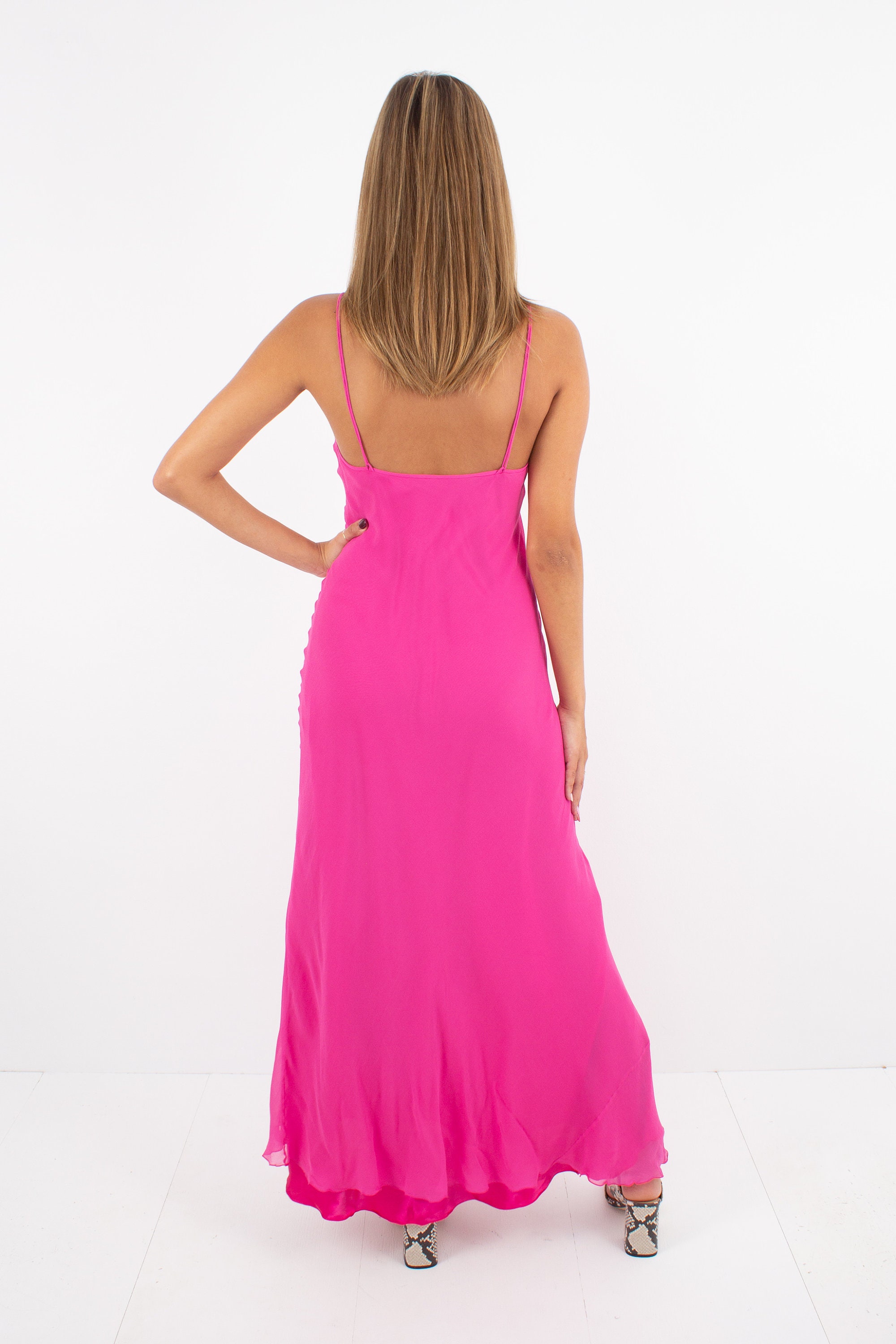 Barbie Hot Pink Silk Maxi Dress Pure Silk Dress Silk Slip Etsy