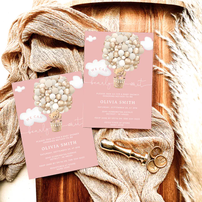 Tag : Bear Hot Air Balloon Pink Girl Baby Shower Invitation Zazzle
