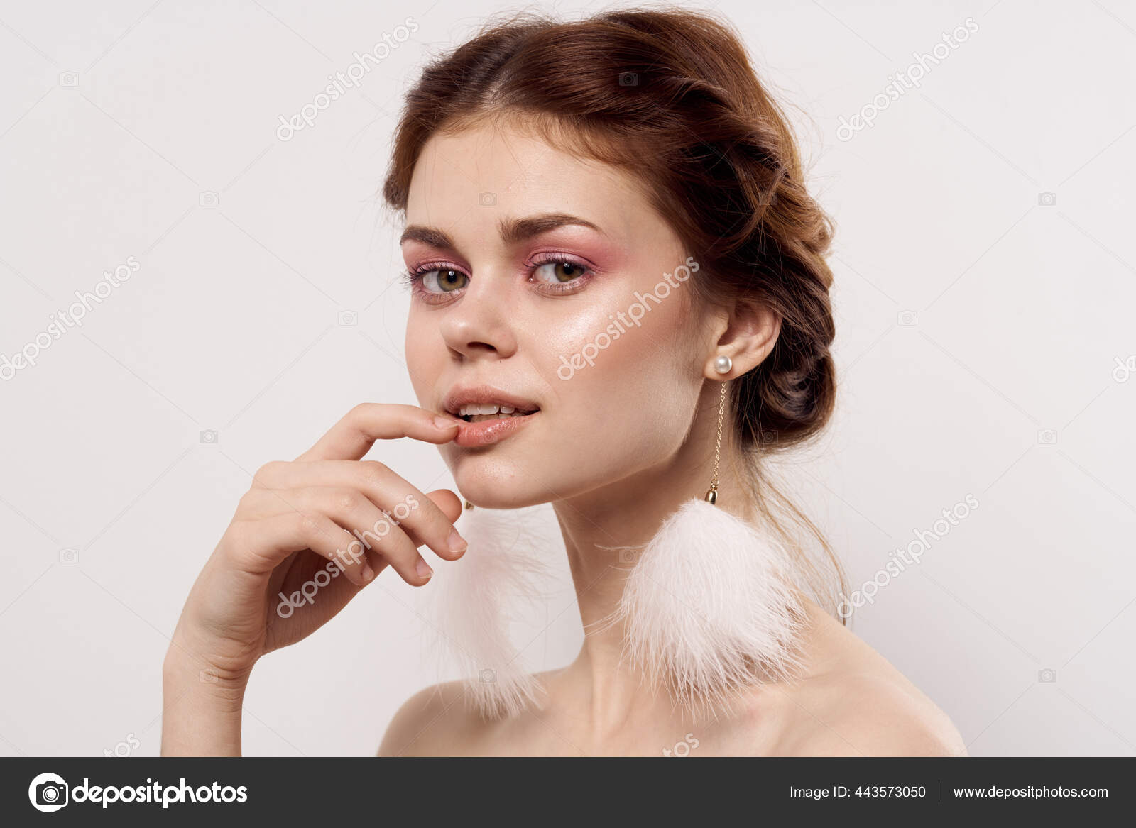 Tag : Beautiful Woman Bright Makeup Clean Skin Naked Shoulders Smile Glamor Stock Photo ShotStudio