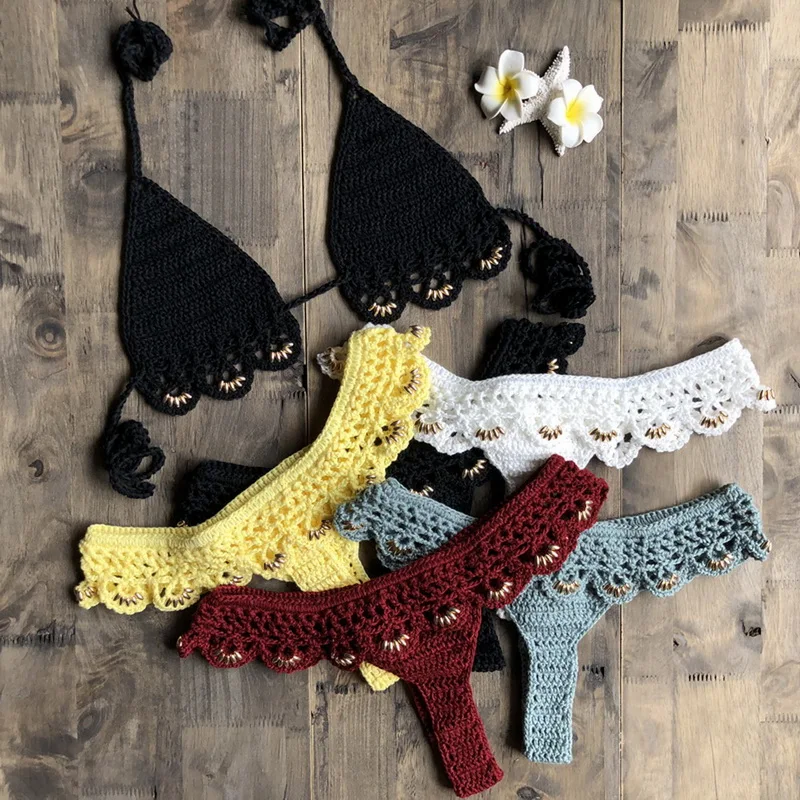 Tag : Best Seller 1 Set Women S Sexy Micro Thong G String Lingerie Top Bra Bottom Handmade Crochet