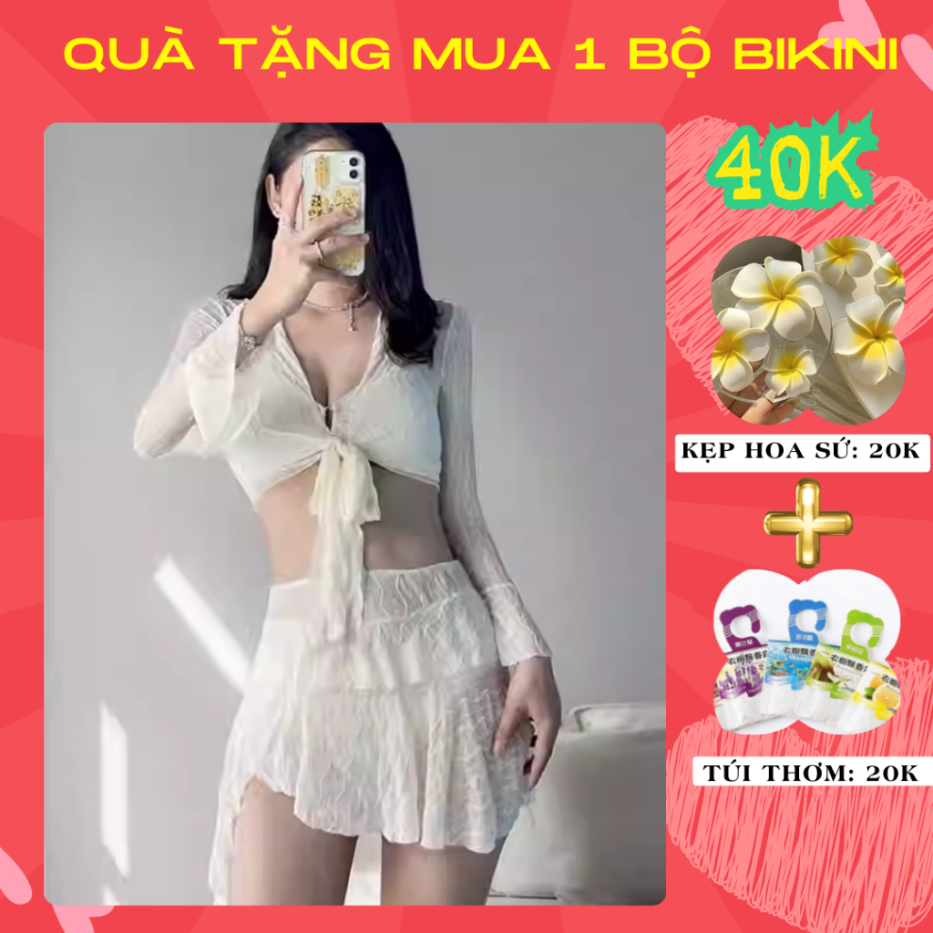 Bikini Đồ Bơi Tiểu Thư đi biển cho nữ set 4 chi tiết áo dài tay kèm quần tam giác và chân váy áo is a popular picture for sexy and hot.