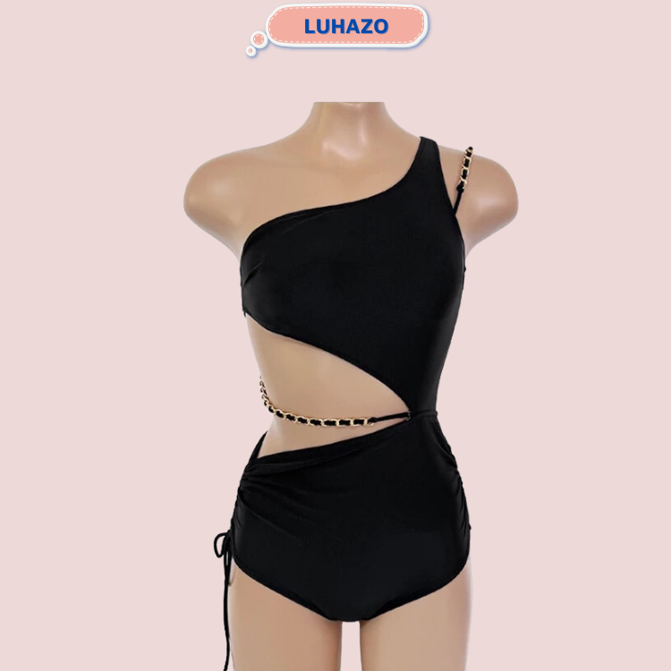 Bikini đi biển 1 mảnh LUHAZO liền thân ệch vai khoét eo phối dây xích quần cạp cao che bụng rút is a popular picture for sexy and hot.