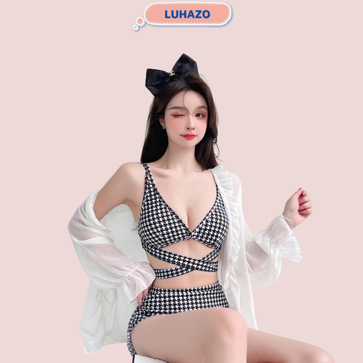 Tag : Bikini đi biển liền thân LUHAZO mảnh hở lưng liền thân đồ bơi nữ sexy Hàn Quốc caro đen trắng