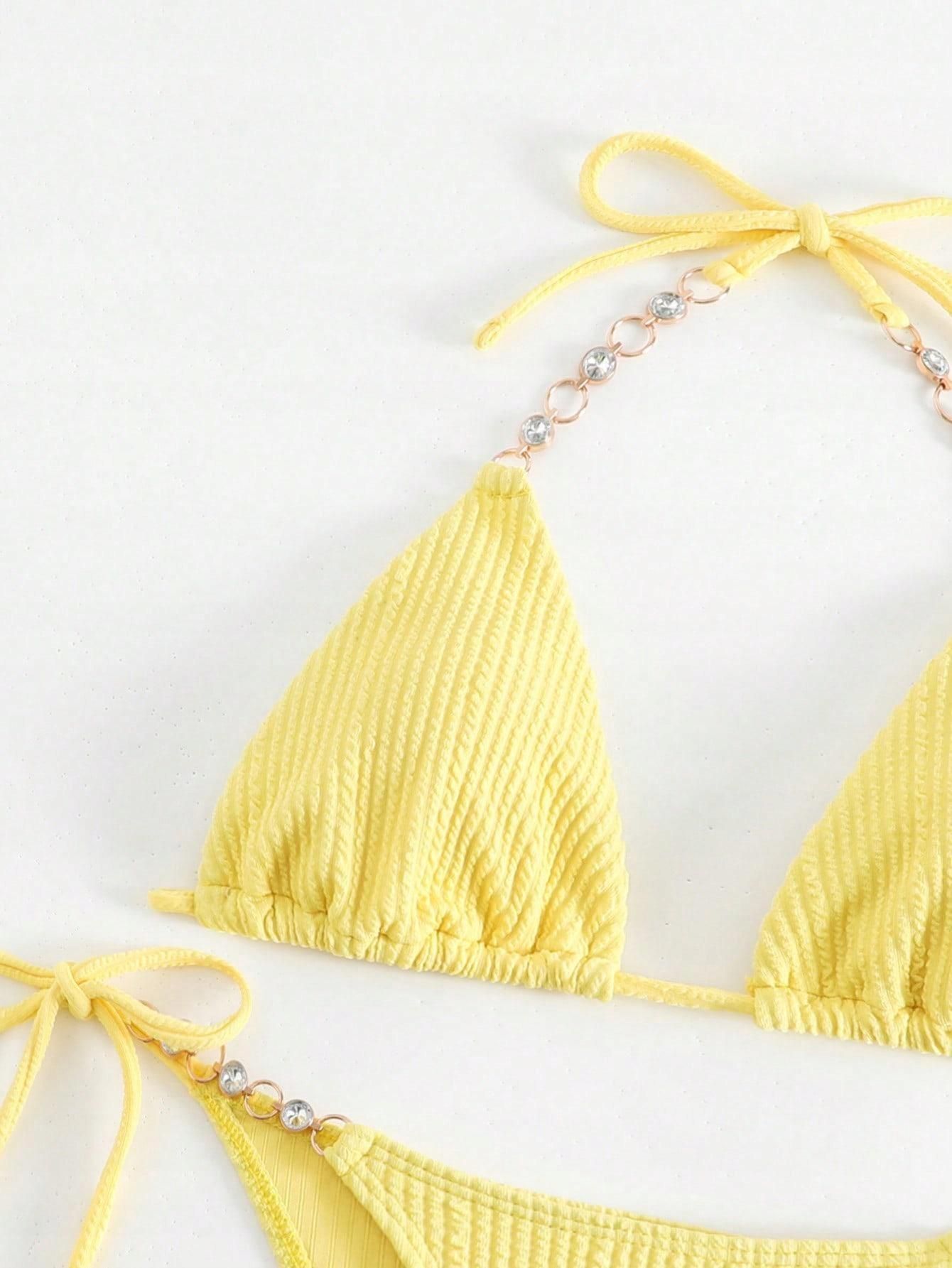 Bikini Marszczenie Wiązanie K X NF S Shein Żółty Zdobiony Komplet 46644