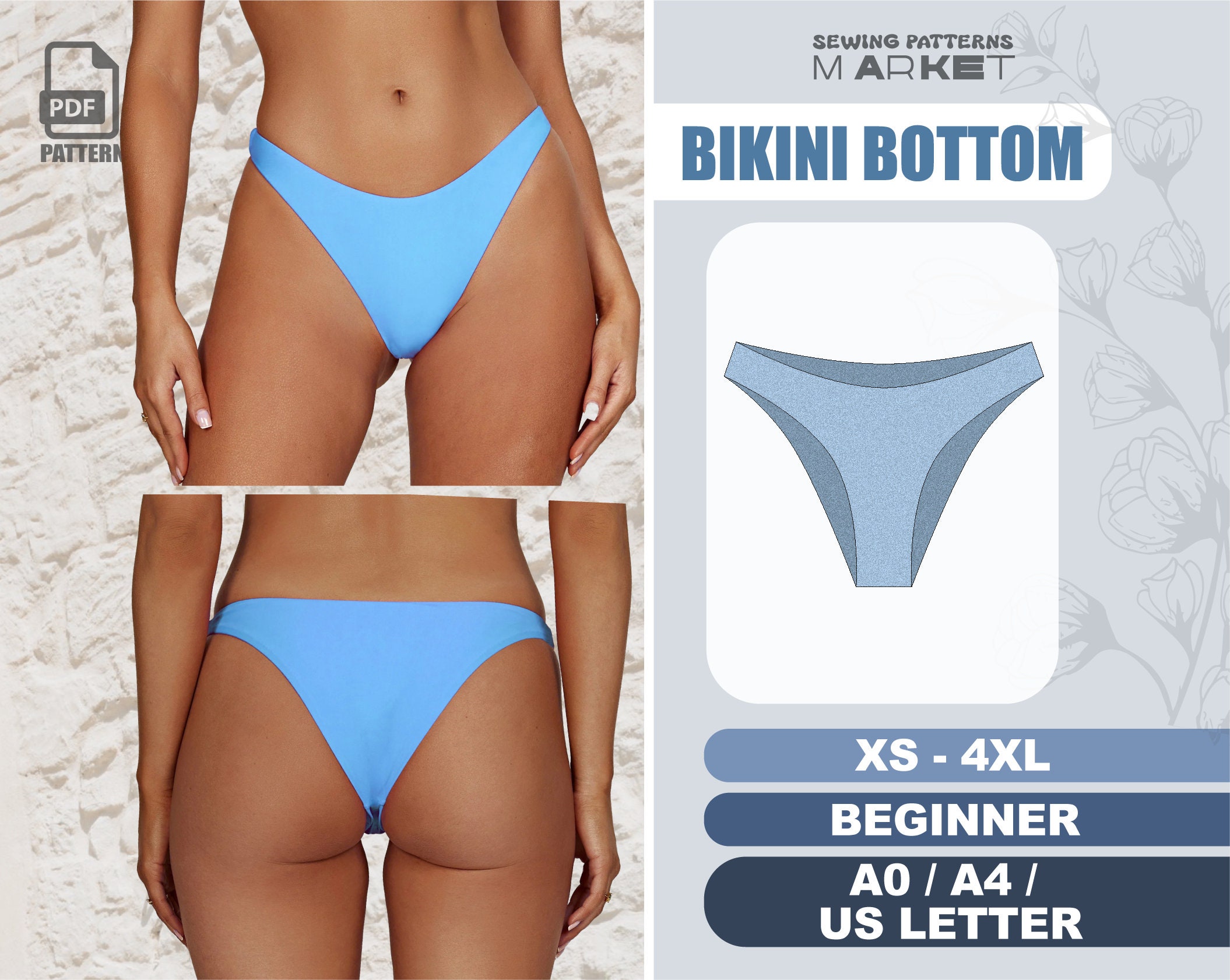 Bikini PDF Sewing Pattern Womens Swimsuit Digital Patterns Size XS 4XL Plus Size Sewing is a popular picture for sexy and hot.