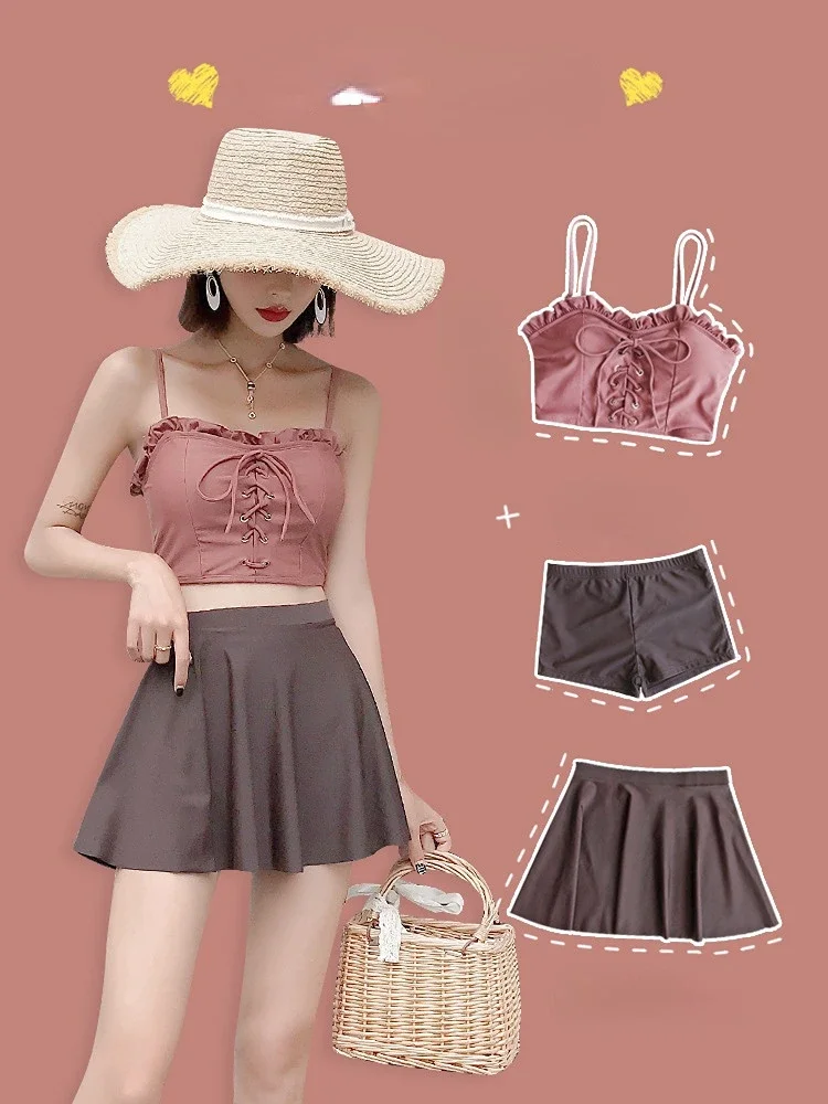 Bikini Swimsuit Three Piece Sexy Summer Women S Solid Color Korean Skirt Style Slim Beach is a popular picture for sexy and hot.