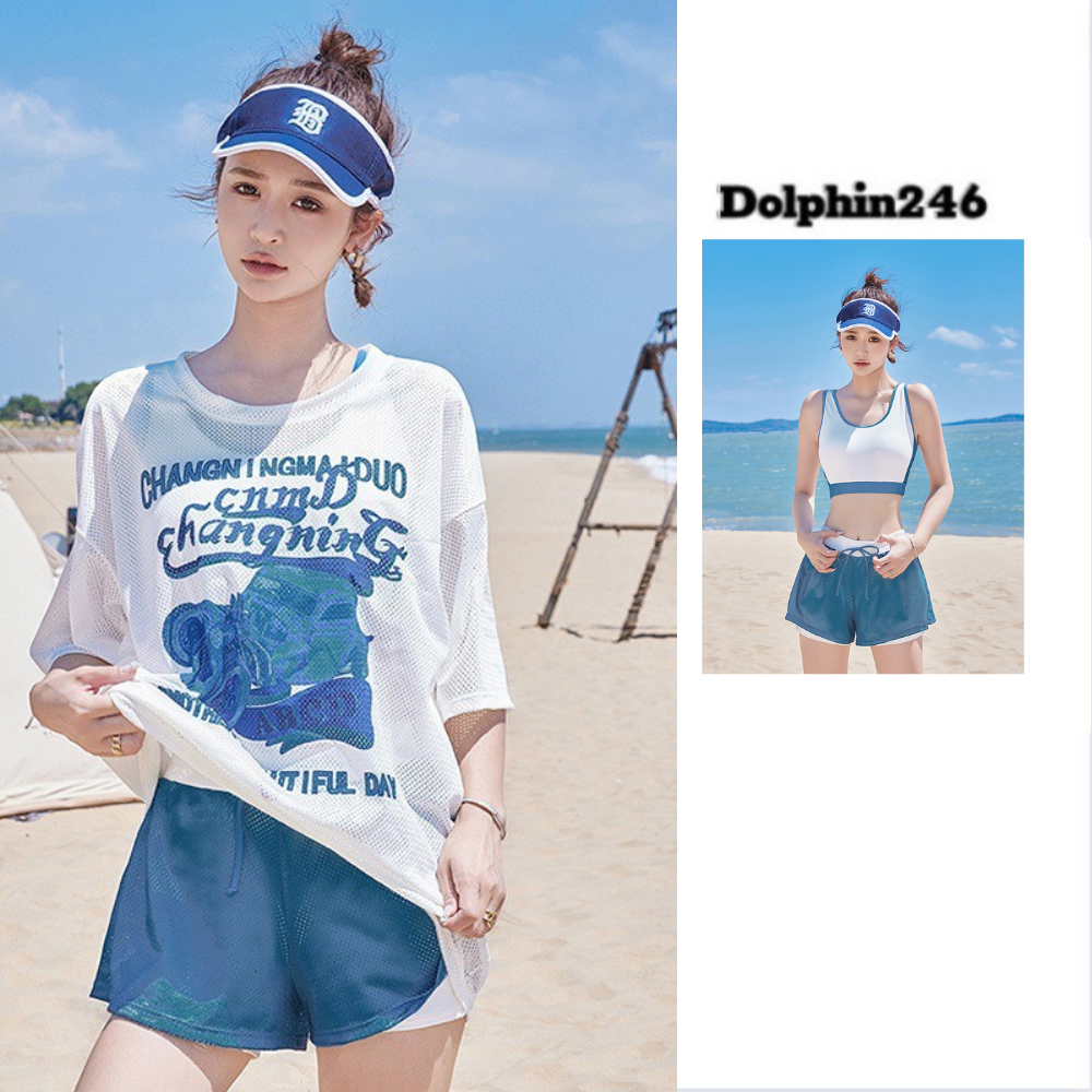 Bikini mảnh có tay đồ bơi đi biển Set chi tiết áo bra quần đùi kèm áo lưới ngoài bigsize kín is a popular picture for sexy and hot.