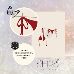 Bikini On Clothesline Print College Apartment Decor Coastal Beachy Dorm Room Posters Trendy is a popular picture for sexy and hot.