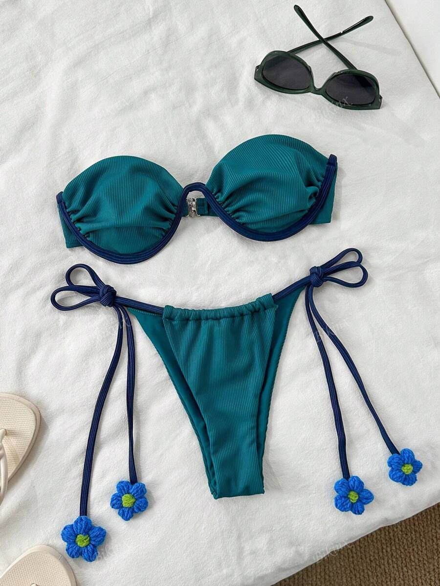 Tag : Bikinx Women S Knitted Detachable Straps Underwired Flower Embellished Bikini Set For Beach