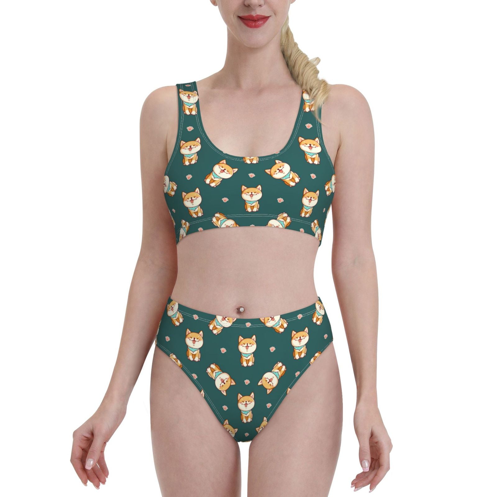 Bixox Cute Shiba Pattern Two Piece Sports Bikini With U Shaped Top And is a popular picture for sexy and hot.