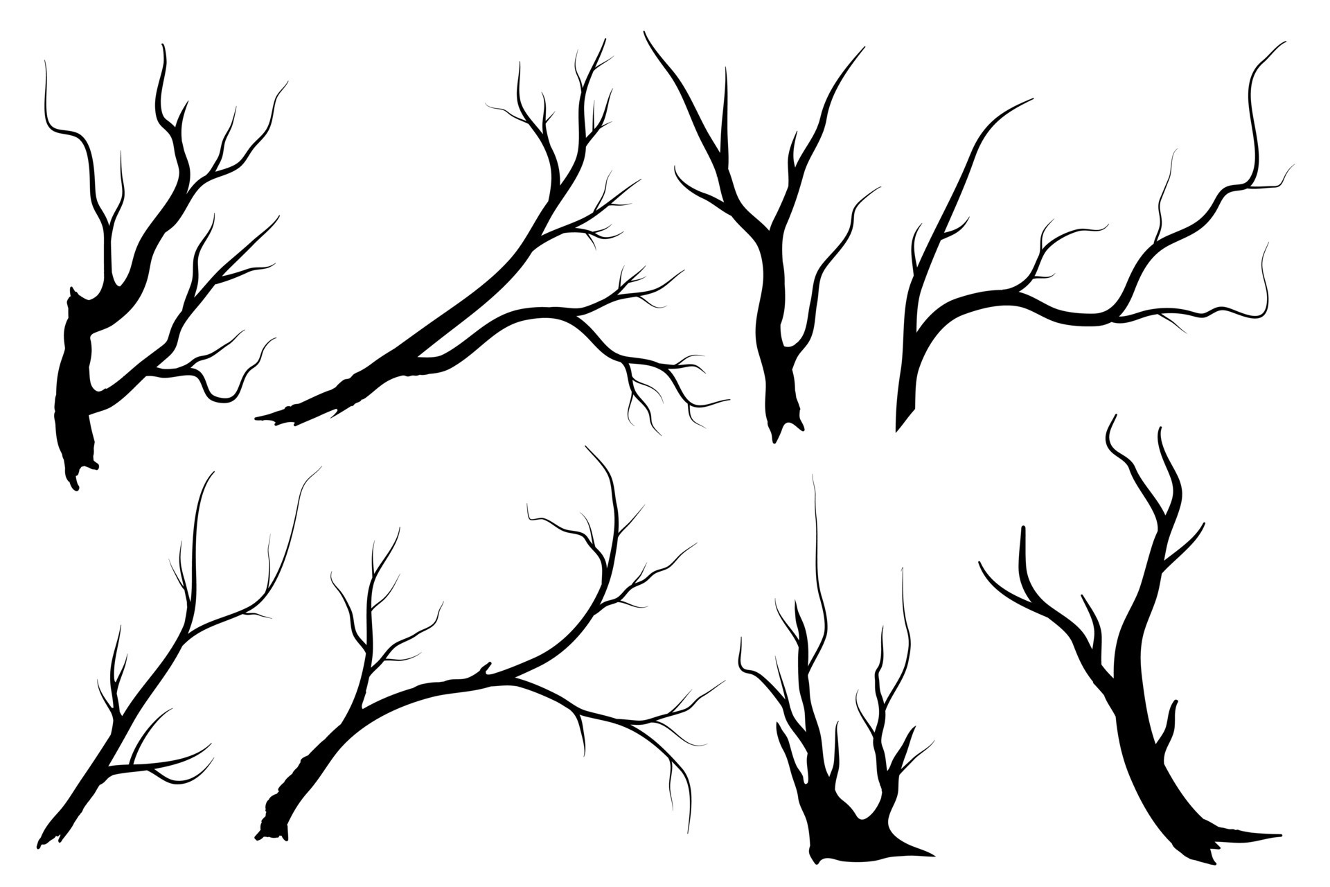 Tag : Black Branch Tree Or Naked Trees Silhouettes Set Hand Drawn Isolated Illustrations 18976632