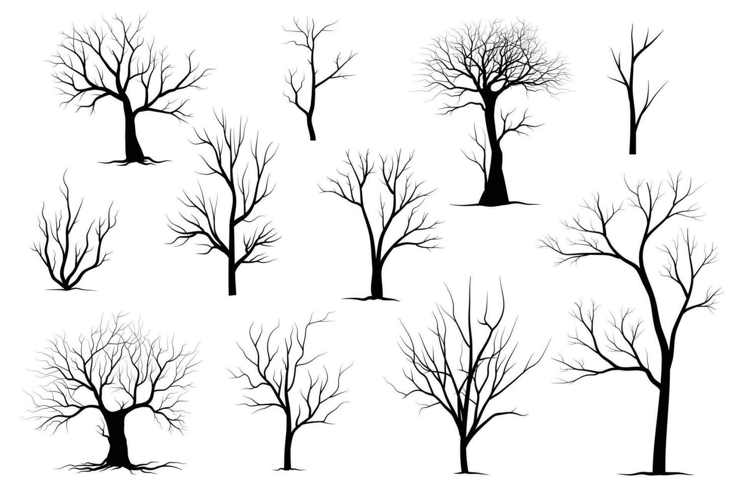 Tag : Black Branch Tree Or Naked Trees Silhouettes Set Hand Drawn Isolated Illustrations 23633630