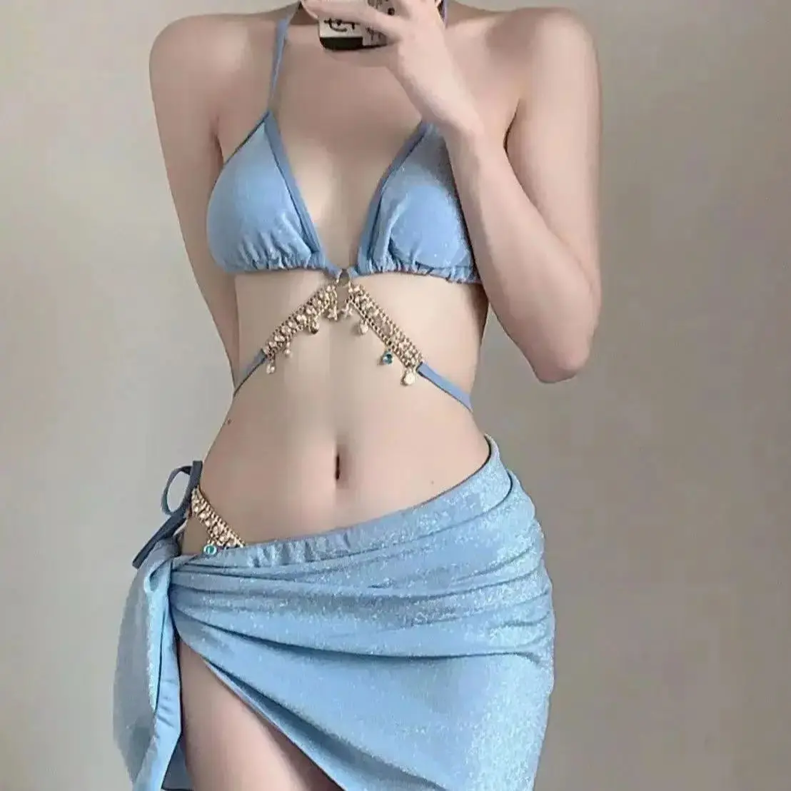 Blue Sexy Bikinis Swimsuit Rhinestones Swimwear Female Push Up Bikini Beach Cover Up 3 Piece is a popular picture for sexy and hot.