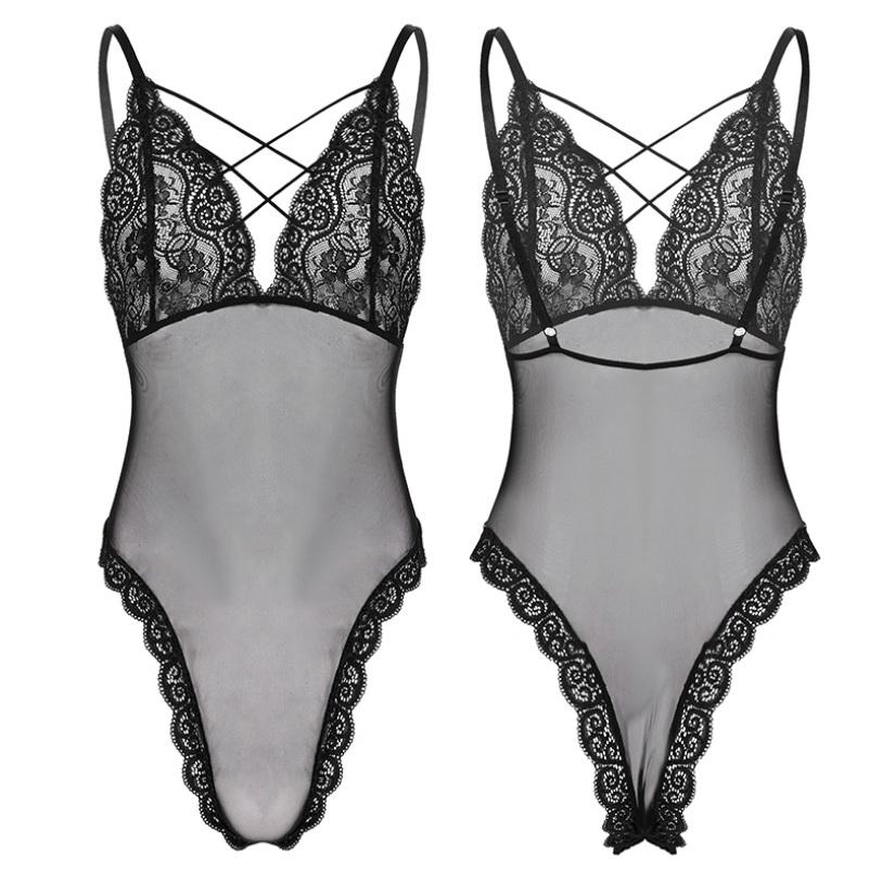 Body en dentelle transparente pour hommes Lingerie une pièce string Sissy justaucorps 81270