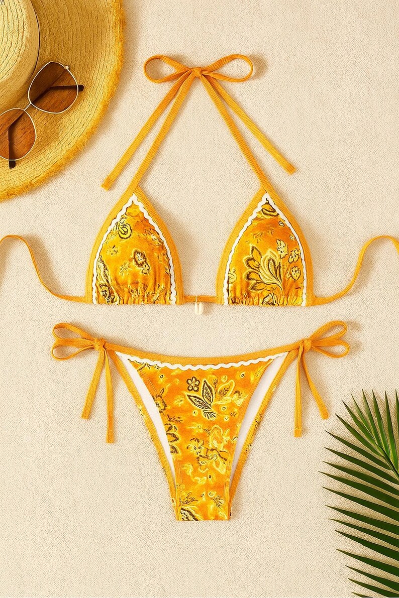 Boho Triangle String Bikini Set Womens Two Piece Swimsuit Summer Halter Bathing Suit is a popular picture for sexy and hot.