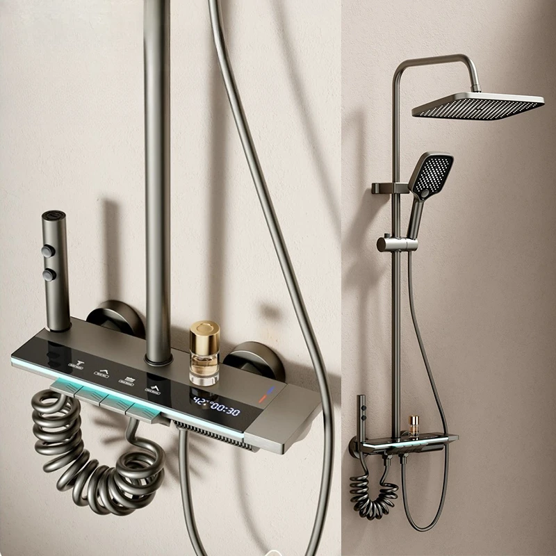 Tag : Brass Hot Cold Pressurized Rainfall Digital Thermostatic Display Piano Shower Set Bidet Shower