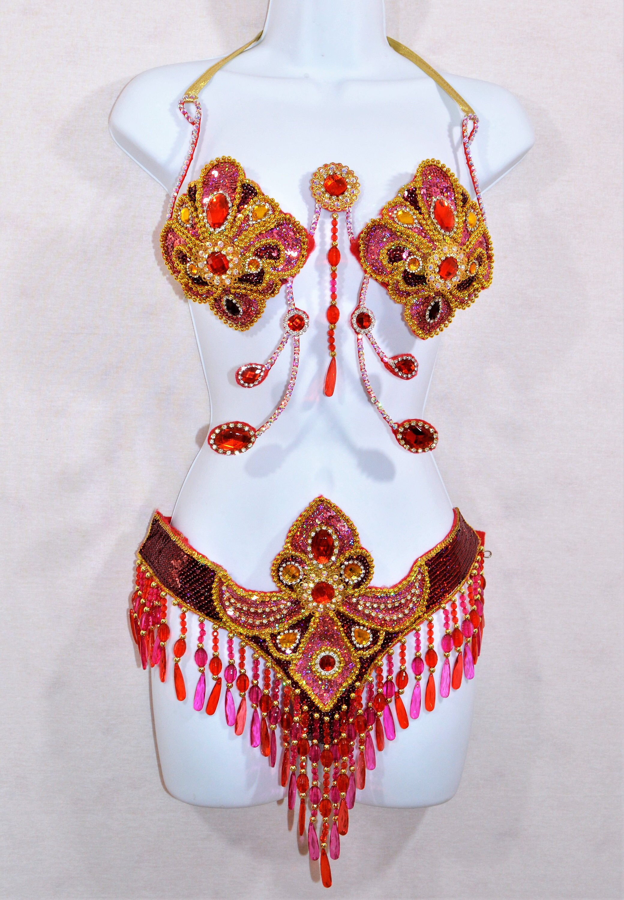 Brazilian String Belly Dance Rio Carnival SAMBA Lux Bikini Costume Waistband BRA Cabaret Show