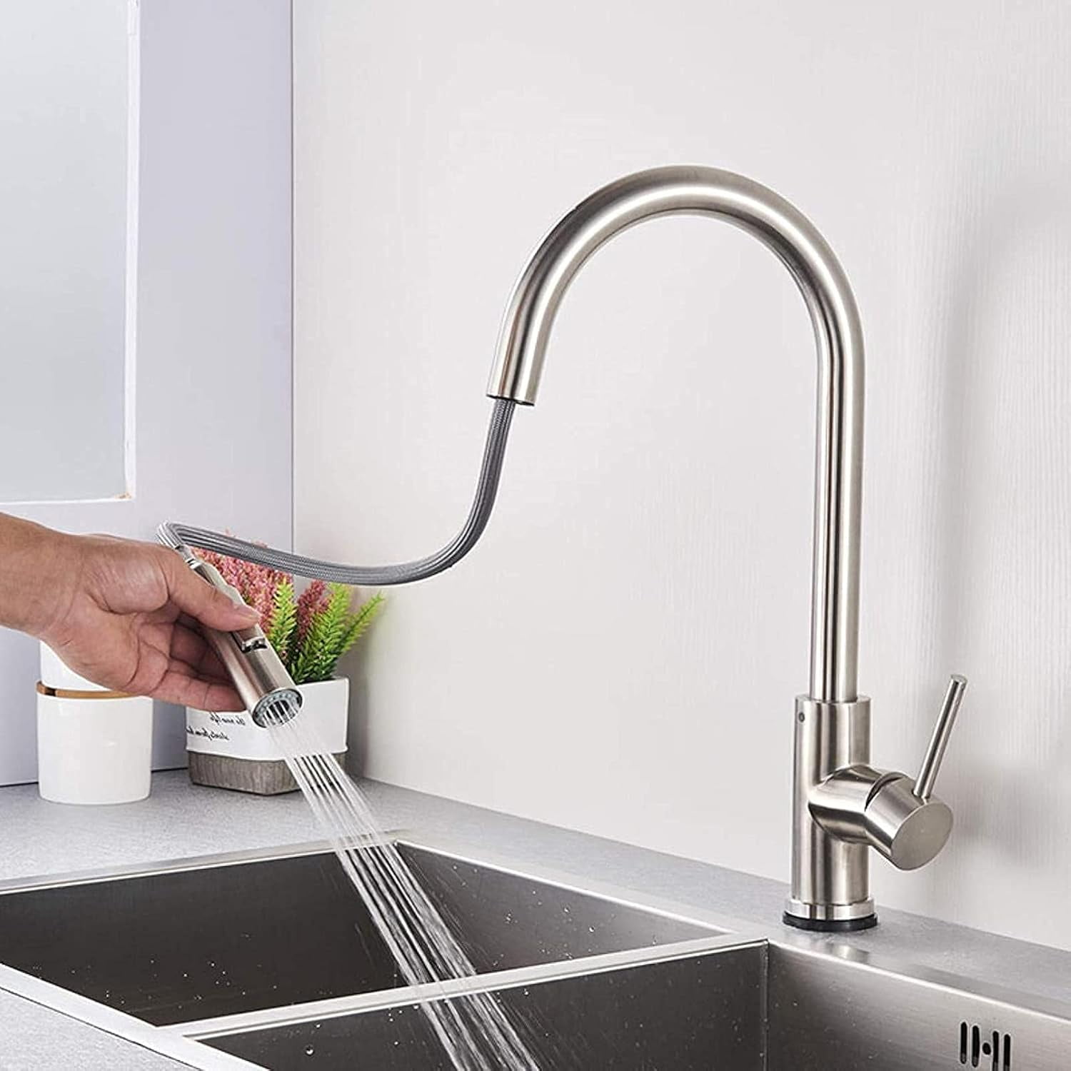 Tag : Brushed Gold Pull Out Kitchen Sink Sensor Faucet Smart Touch Hot Cold Mixer Crane Tap Pull Out
