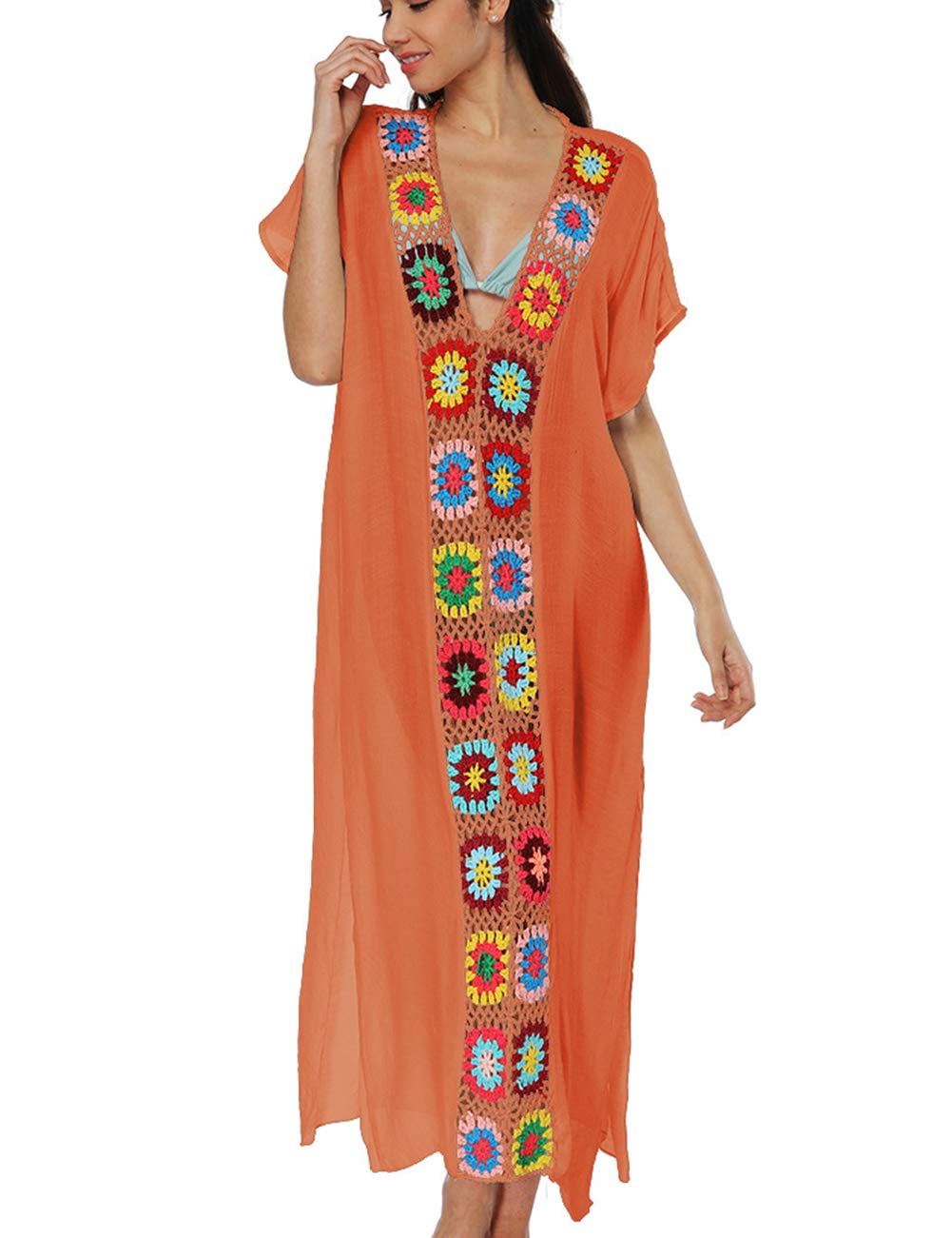 Tag : Bsubseach Women S Boho Beach Crochet Caftan Dress Short Sleeve Bikini Coverup Walmart