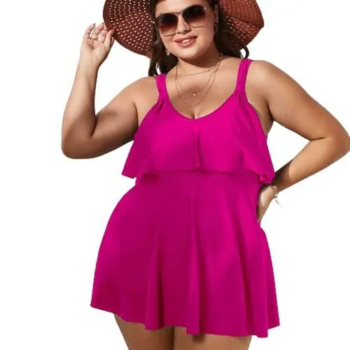 Tag : Buy Plus Curvves Plus Plain Pink Ruffle Hem Bikini Swimsuit XL Online At Best Prices In India