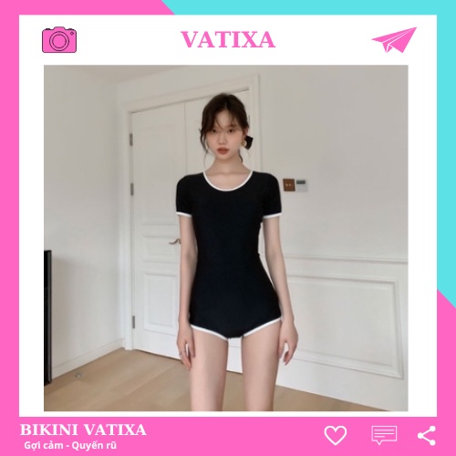Tag : Có Size M L XL Đồ bơi nữ Bikini 1 mảnh cài khoá sau khoét lưng màu đen viền trắng VATIXA