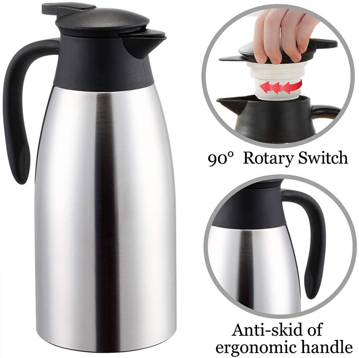 Tag : COD 2 0L Stainless Steel Vacuum Flask Hot Water Coffee Jug Thermos Kettle European Style