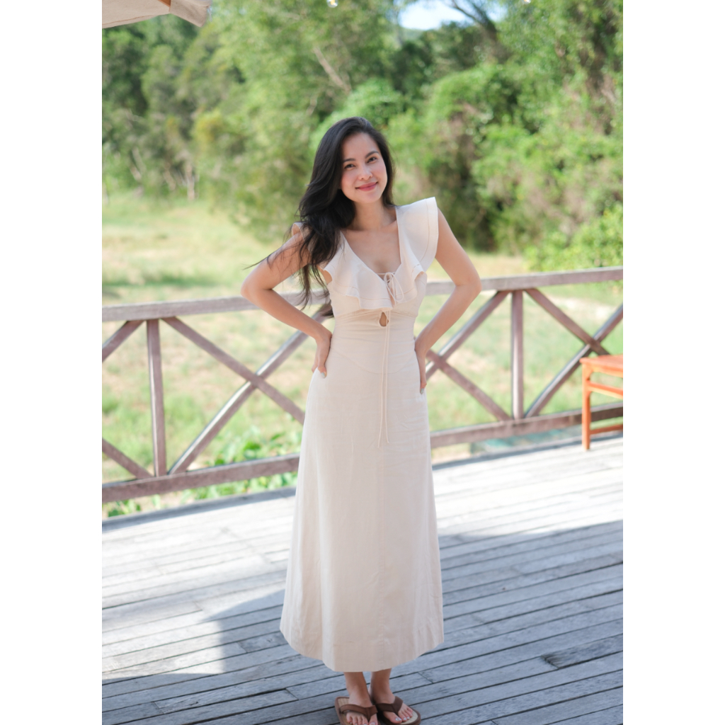 COEM ĐẦM MIDI CỘT DÂY SIẾT EO LINEN TÔN DÁNG CHI DRESS NUDE Shopee Việt Nam is a popular picture for sexy and hot.