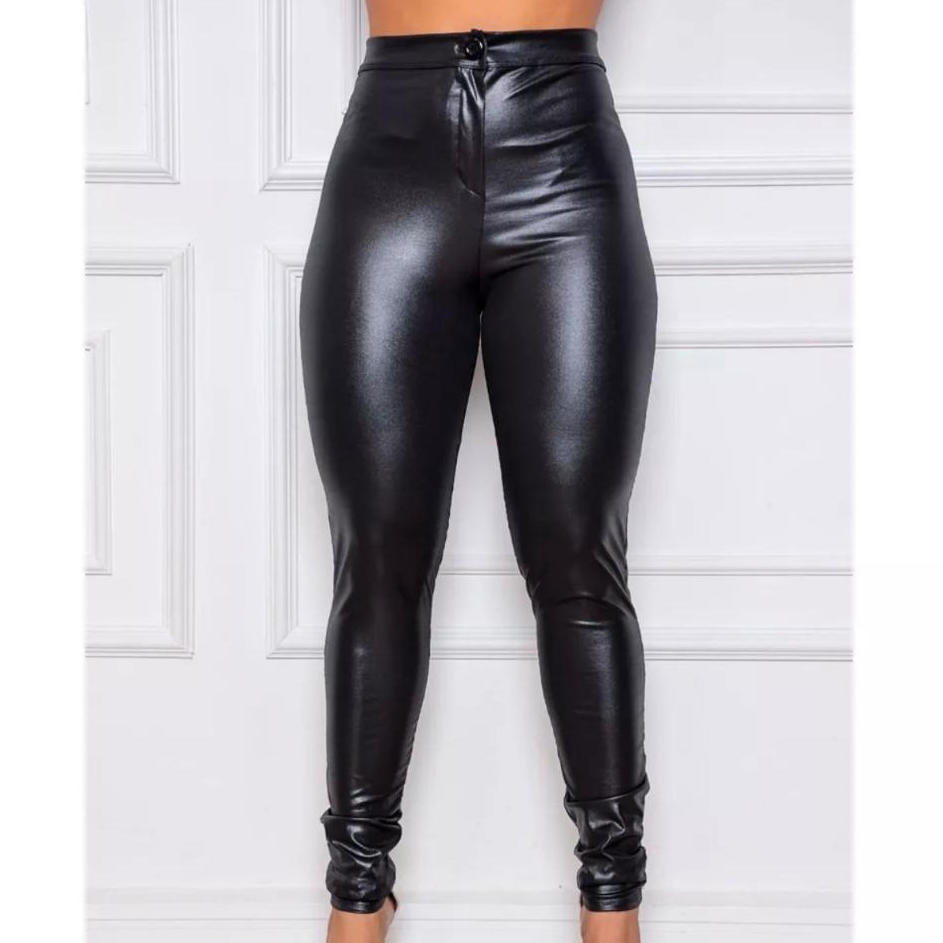 Calça Disco Couro Fake Feminina Cintura Legging Hot Pant Cintura Alta Skinny Botão Shopee Brasil