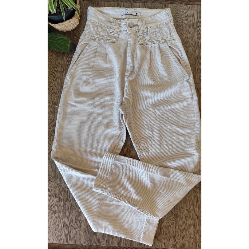 Tag : Calça Jeans Cintura Alta Bege Nude tam Bluesteel Shopee Brasil