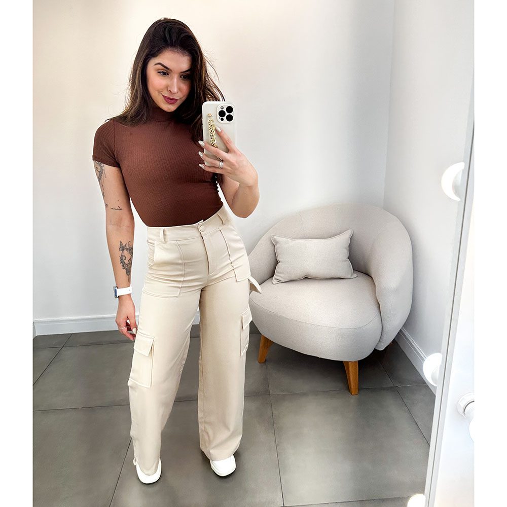 Tag : Calça Pantalona Bolso Cargo Nude Inovar Forever