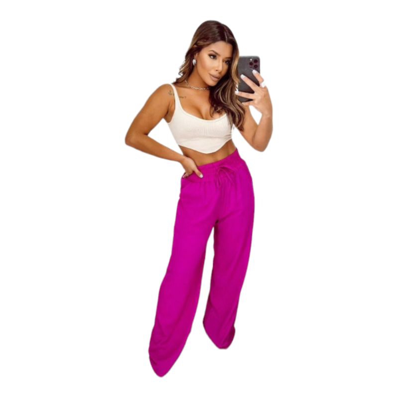 Tag : Calça pantalona bolso Nude Pink listrada cintura alta Shopee Brasil