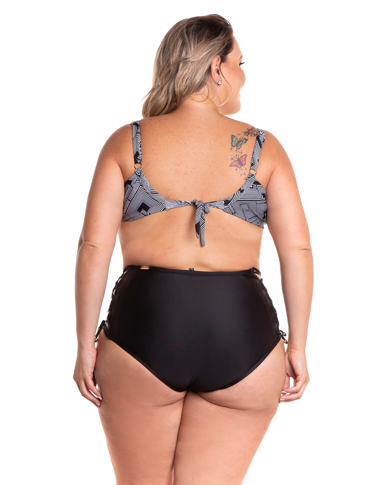 Tag : Calcinha de biquíni hot pants cintura alta trançado na lateral preta