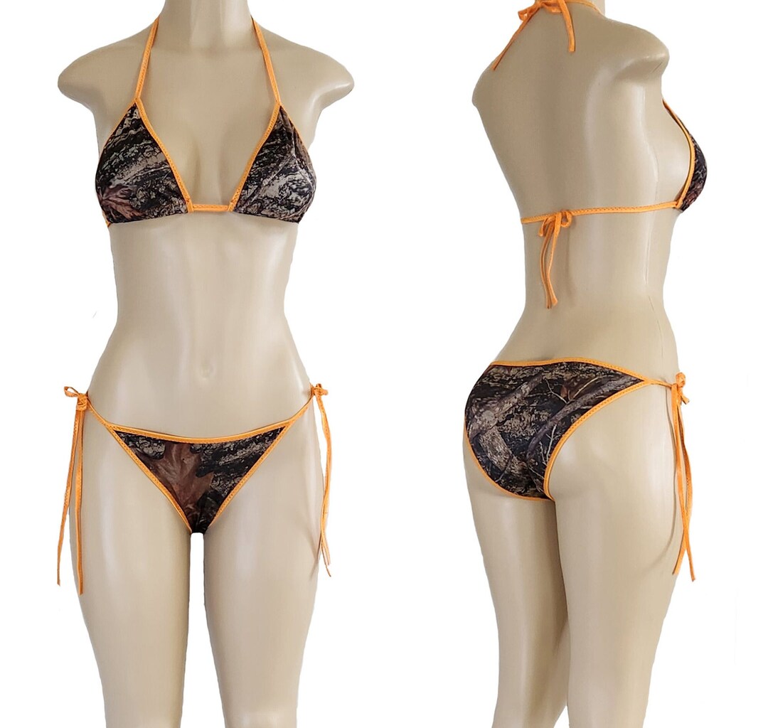 Camo String Bikini With Bright Orange Trim Camouflage Bikini Custom Sizing Made To Order is a popular picture for sexy and hot.