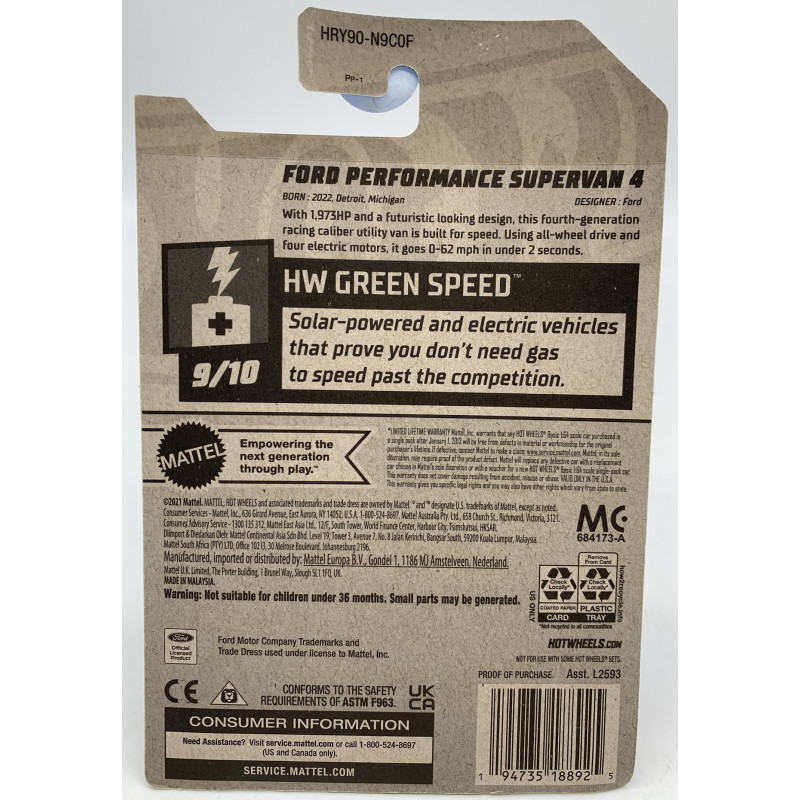 Tag : Carrinho Hot Wheels FORD PERFORMANCE SUPERVAN 4 HW Green Speed