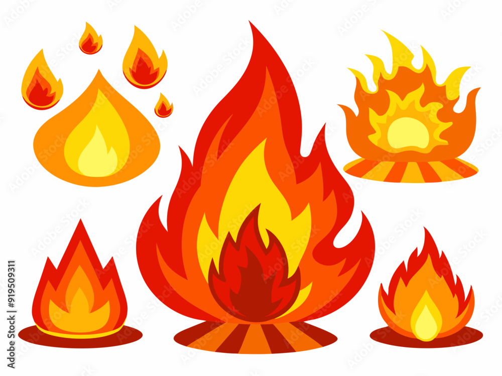 Tag : Cartoon Fire Flame Of Infernal Fireballs Red And Yellow Campfire Hot Wildfire And Bonfire