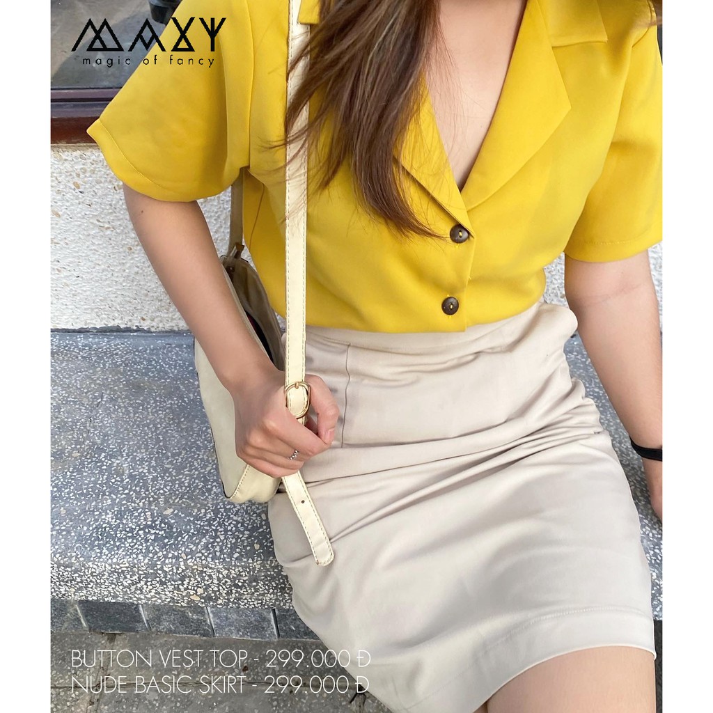 Chân váy chữ A dài ngang gối nude basic skirt Maxy Workshop Shopee
