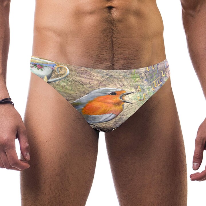 Chinfy Men S Singing Bird Art Painting Swimsuit Brief Bikini Swimwear Sexy Swimsuit Swimming is a popular picture for sexy and hot.