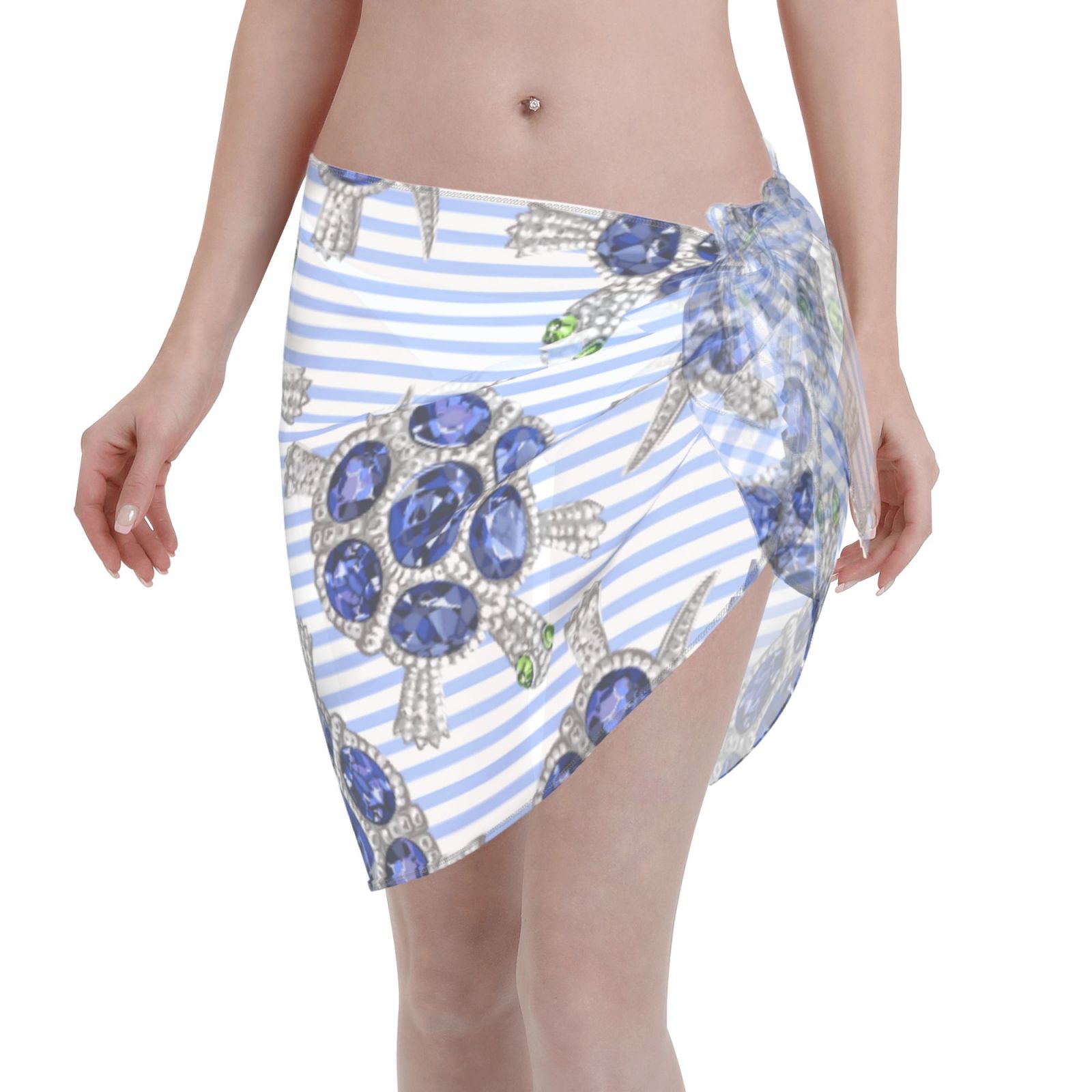 Coaee Turtle With Blue Stones Women S Short Sarongs Beach Wrap Sheer Bikini Wraps Chiffon Cover 149625