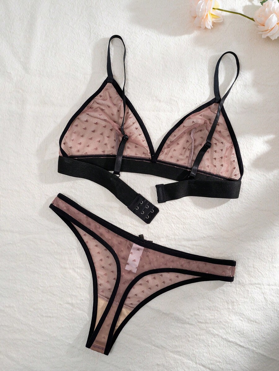 Colorblock Heart Mesh Lingerie Set With Lace Trim Bra Panty Set SHEIN Singapore is a popular picture for sexy and hot.