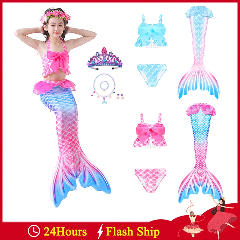Colors Mermaid Costume Ariel Swimwear Princess Fishtail Swimming Outfit Bikini Set Pink Blue 95496