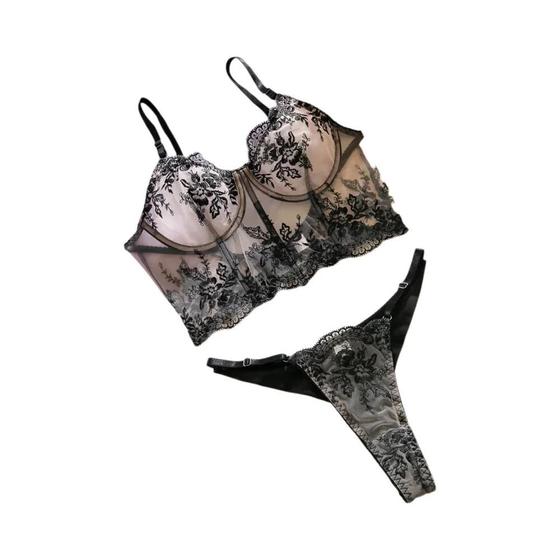 Conjunto De Lingerie Bordado Floral Preto Para Mulheres Peças Sutiã Floral Aro 161760