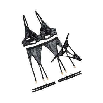 Tag : Conjunto De Lingerie De Couro Feminino Sexy Tanga Sutiã Combinação Exótico Oco Roupa Interior